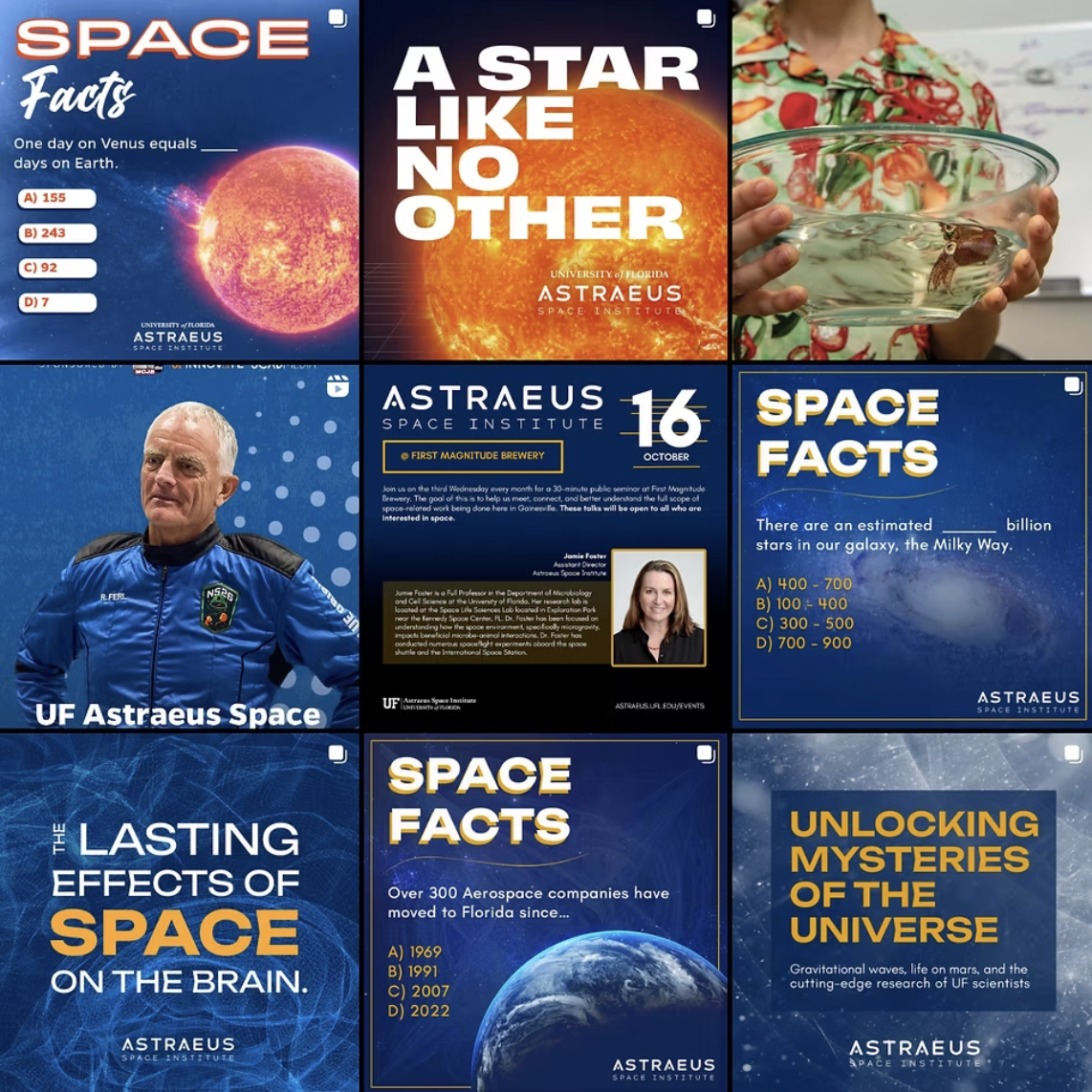 When the University of Florida set out to launch a new space research institute, our team built the brand from liftoff to landing. As Lead Copywriter, I helped shape everything from the name and tagline to the website and social voice for the Astraeus Space Institute.