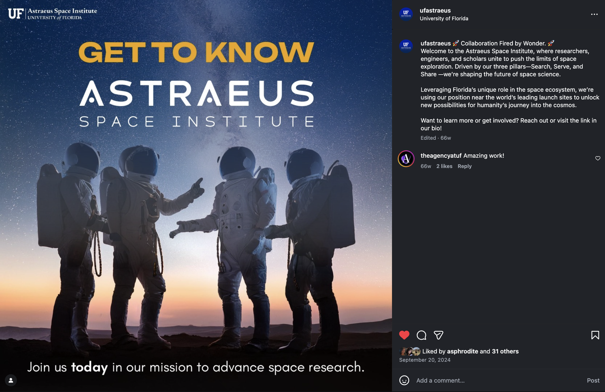 Astraeus Space Institute Instagram Feed: